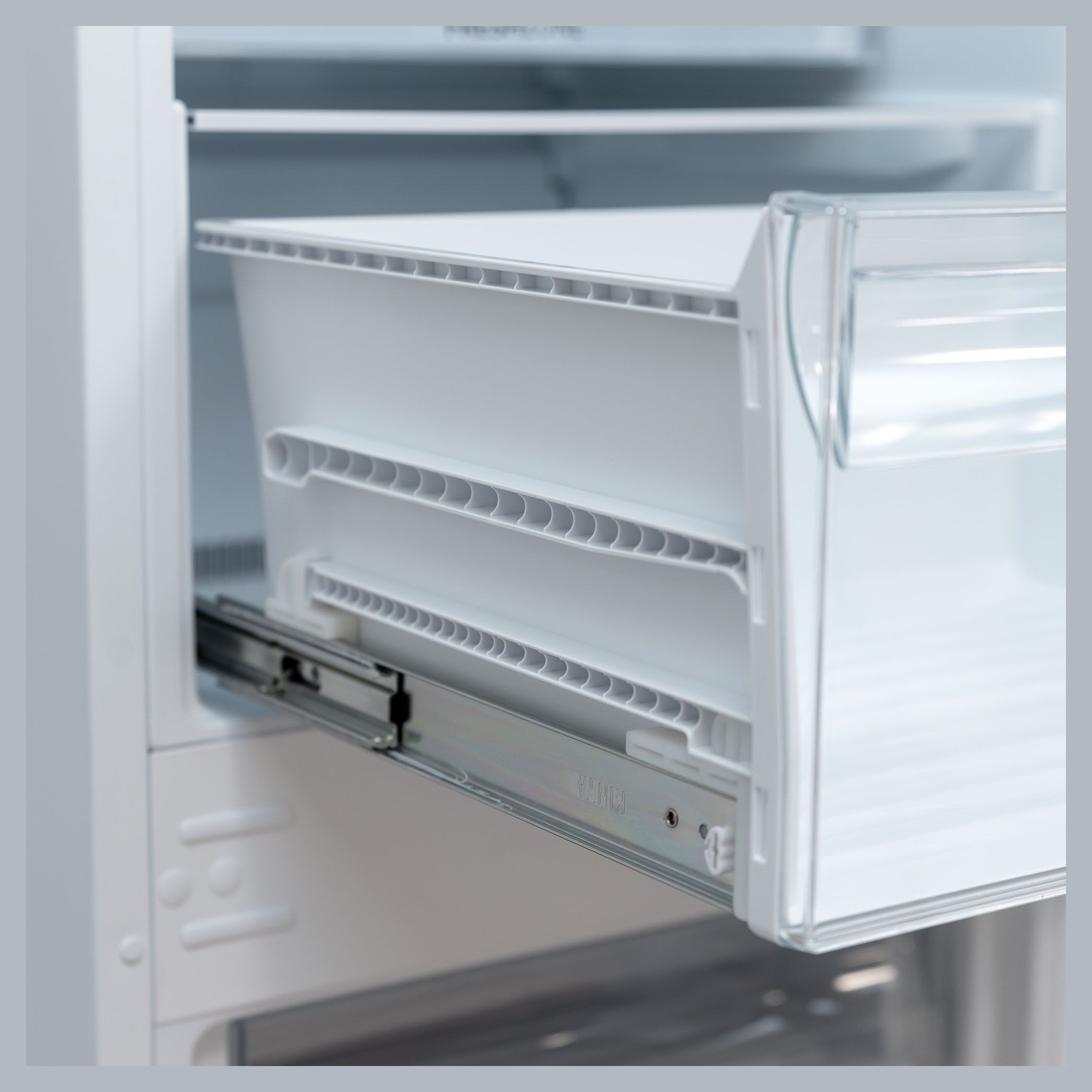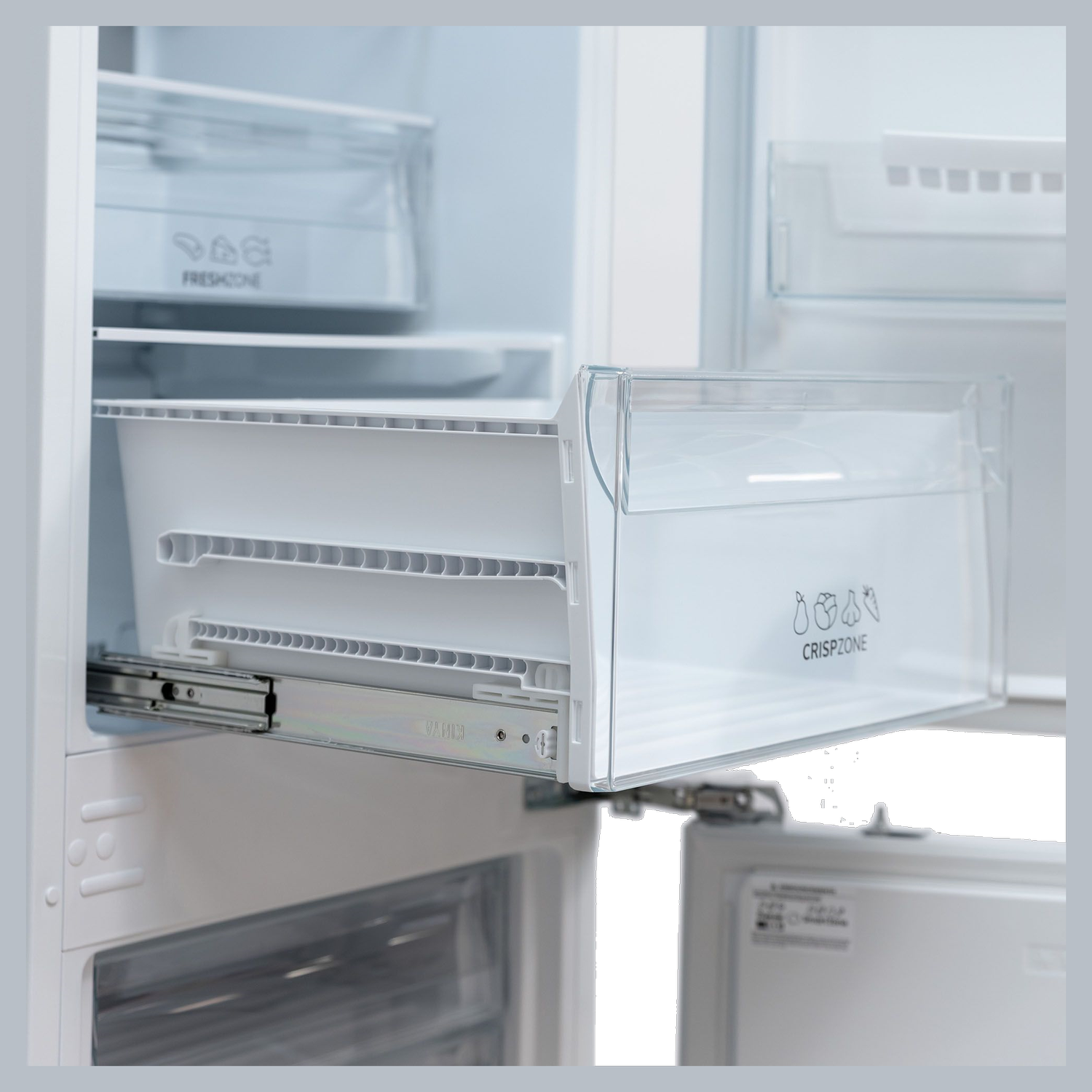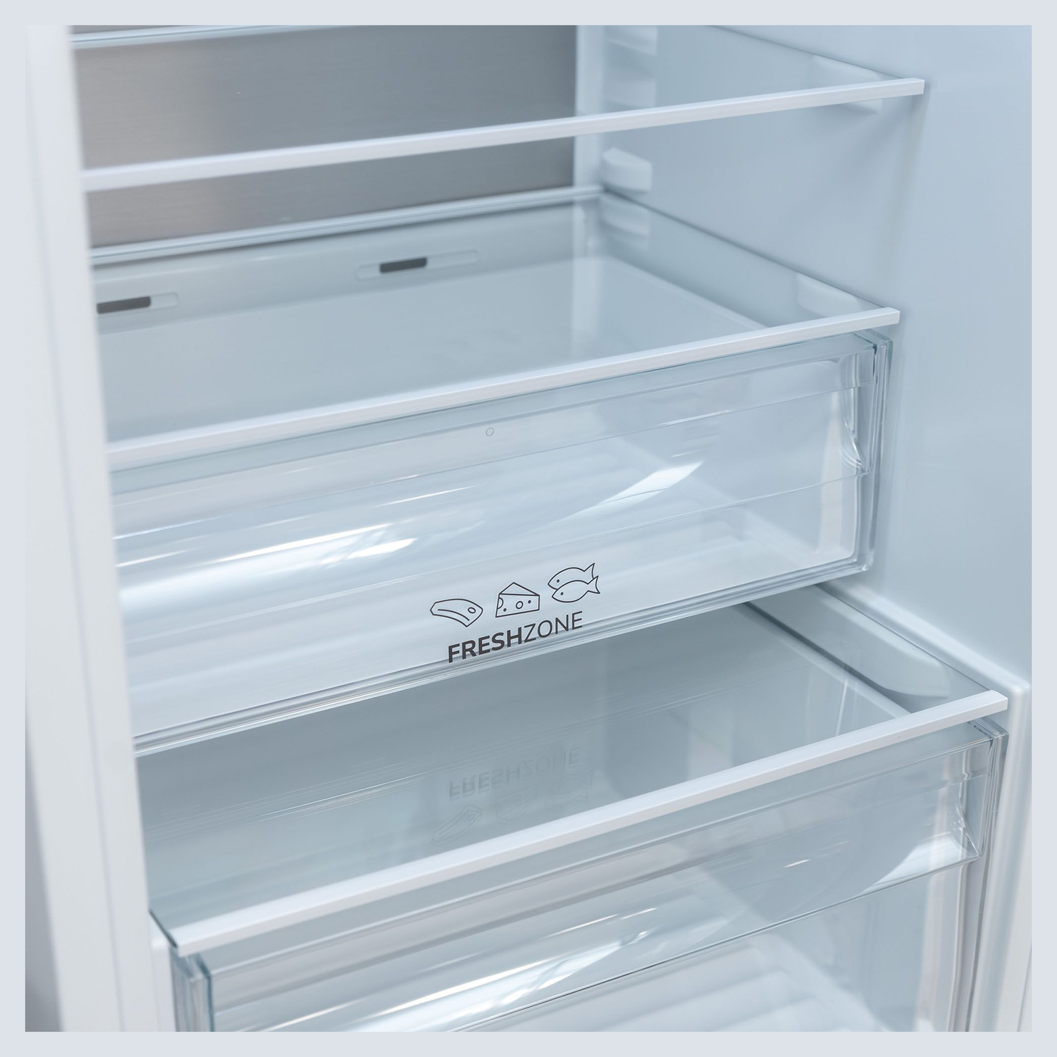 Ящики на телескопический направляющих. Металлическая задняя стенка. Полка для бутылок. Fresh zone.
