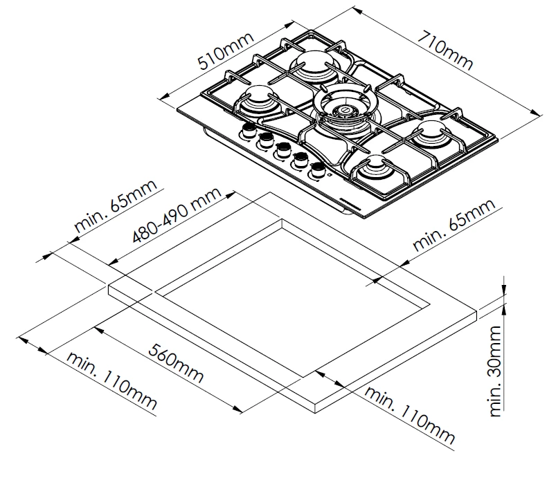Рабочая поверхность Kuppersberg FG 73 B выполнена с использованием закаленного стекла. Данный материал отличается высочайшей устойчивостью к постоянному воздействию высоких температур, а также мгновенно очищается от любых загрязнений. Технология газ-контроля призвана молниеносно блокировать подачу голубого топлива при затухании пламени. Используя поворотные переключатели, вы не только определитесь с необходимой интенсивностью нагрева, но и сможете активировать функцию электрического розжига одним движением.