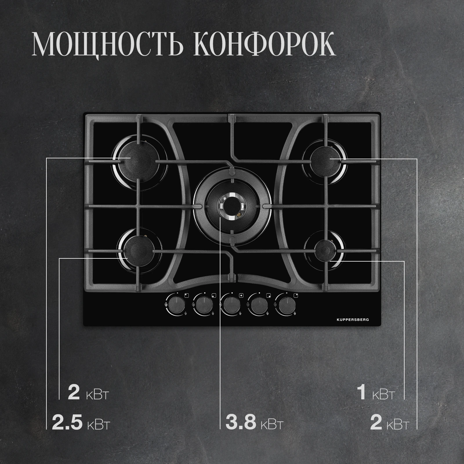 Мощная конфорка с тройным пламенем для быстрого приготовления в крупной посуде.