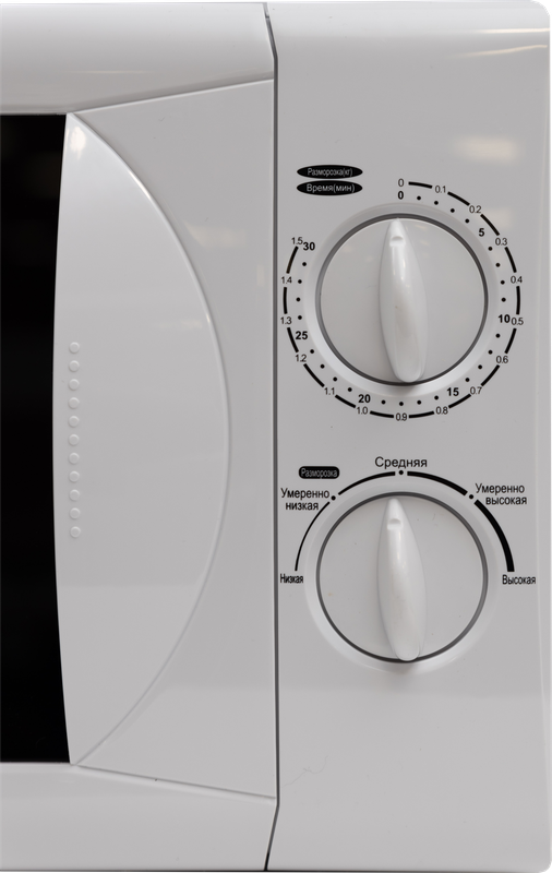 Микроволновая печь оборудована механическим управлением, которое позволяет разогревать еду с использованием 5 различных уровней мощности. Дополнительной особенностью является звуковой сигнал, который сообщит о завершении приготовления блюда.
