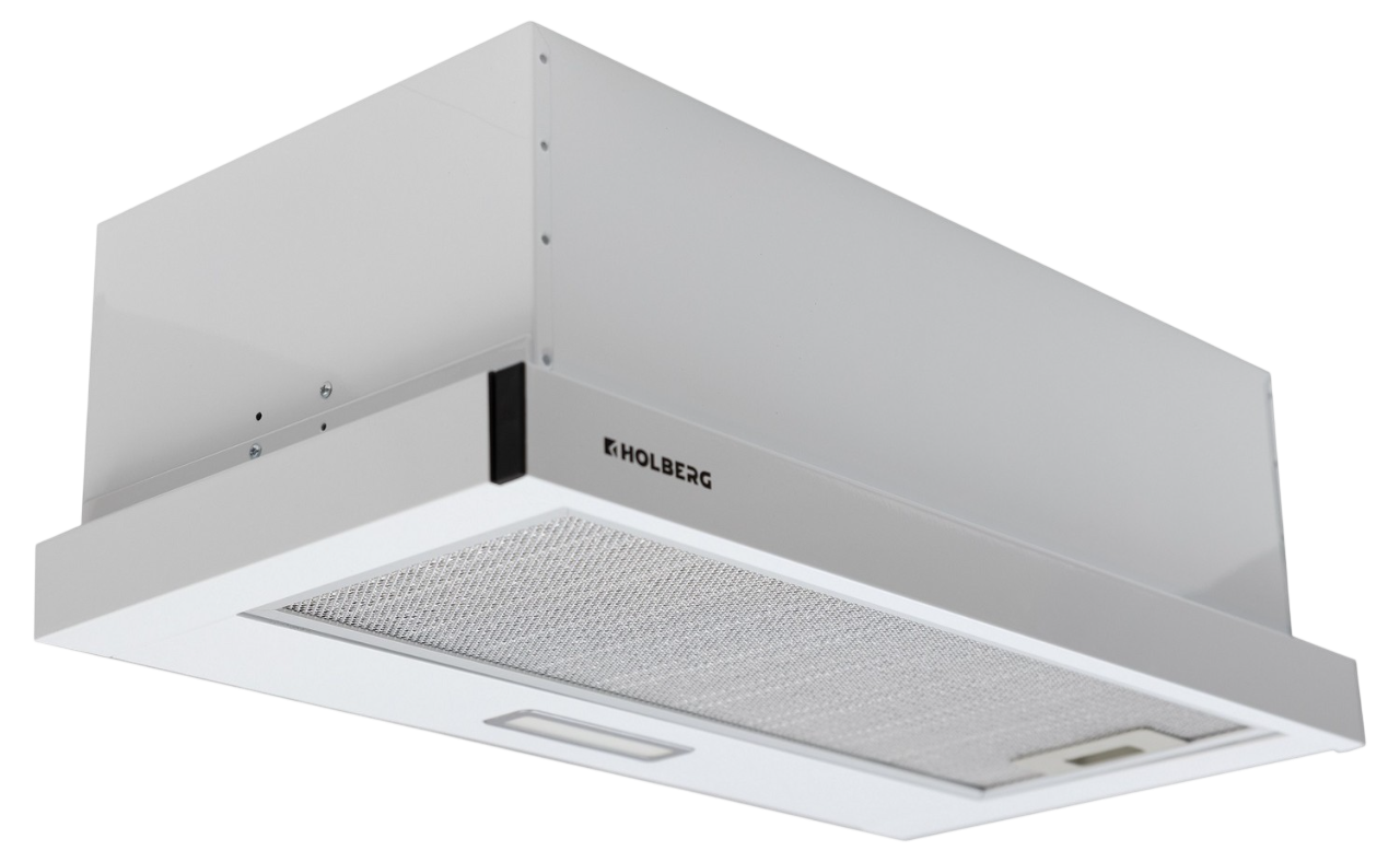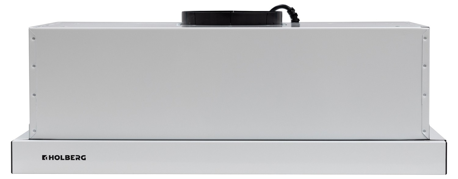Вытяжка телескопическая HOLBERG Line 600W в металлическом корпусе белого цвета оборудована кнопочной панелью, которая поможет выбрать подходящую среди 2 скоростей.