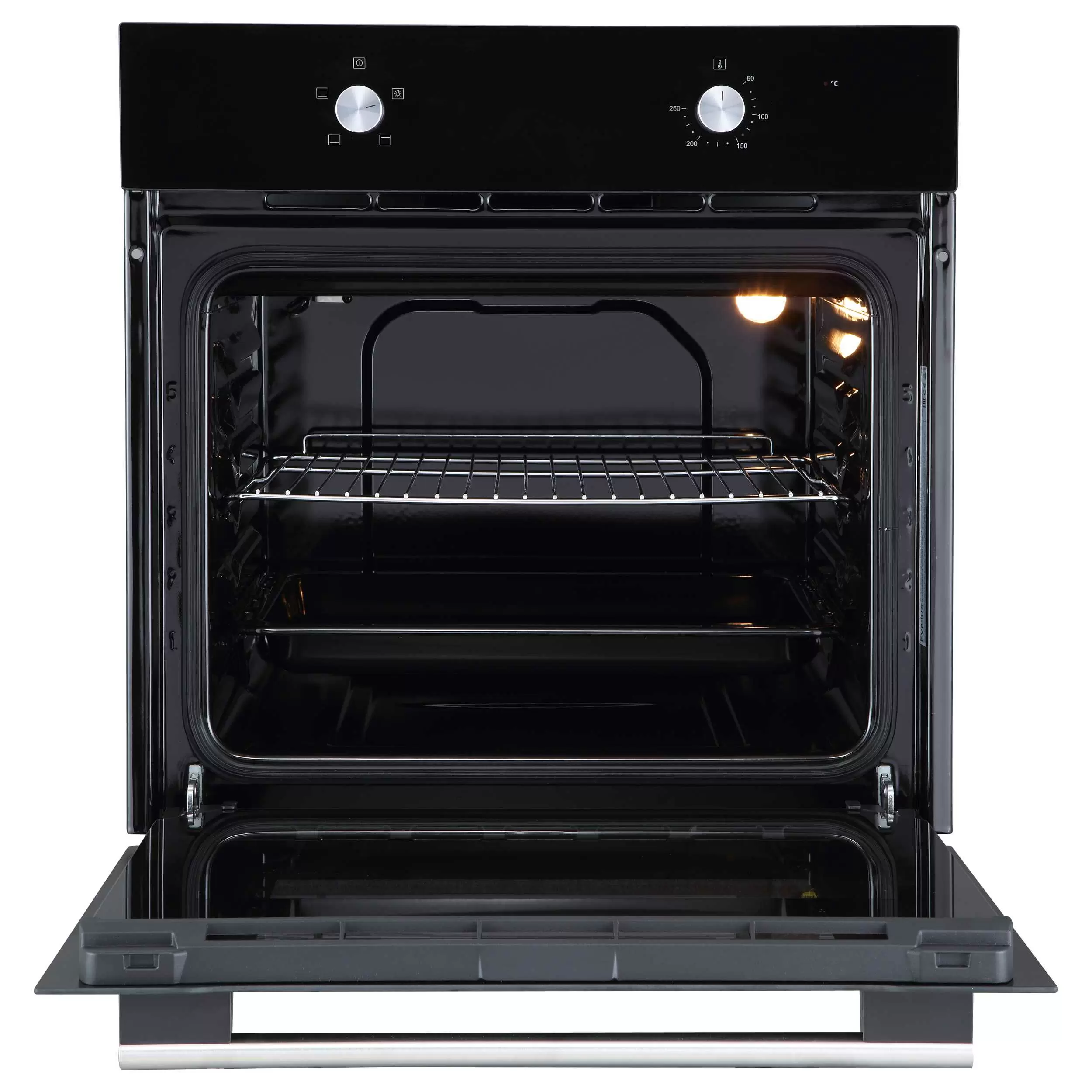 Управление механическое, за него отвечают два поворотных регулятора. Температура устанавливается в диапазоне от 50°С до 250°С. Опорой для противней служат рельефные направляющие. Стенки покрывает эмаль легкой очистки, загрязнения удаляются гидролизным методом. Безопасность обеспечивается системой автоматического отключения. Дверца оснащена двойным стеклом, препятствующим сильному нагреву снаружи.