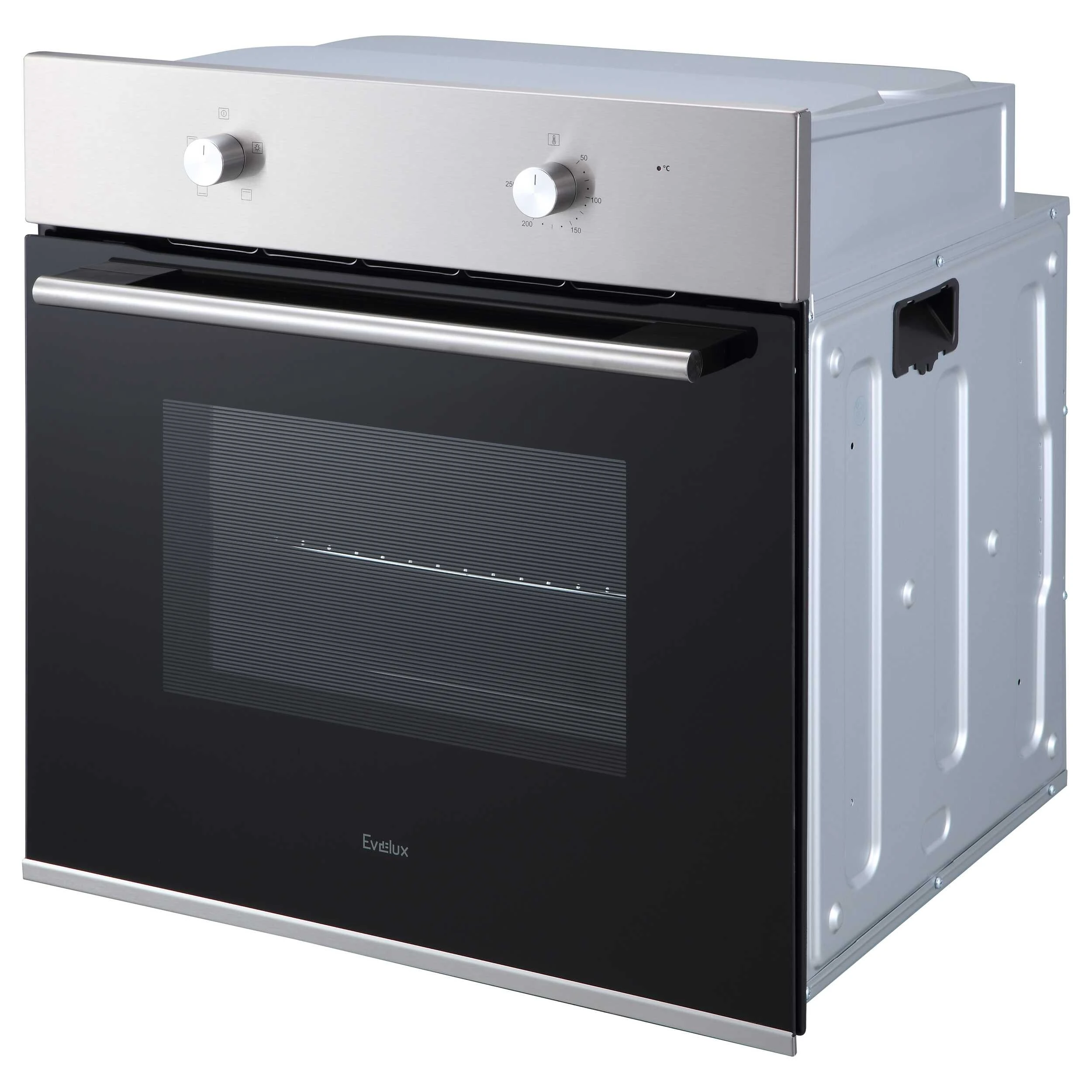 Встраиваемый электрический духовой шкаф Evelux EO 610 X объемом 65 л выполнен в черном цвете с верхней панелью и фурнитурой из нержавеющей стали. Прибор работает в трех режимах нагрева: верхний, нижний жар и их сочетание. Внутренняя подсветка (лампа накаливания мощностью 25 Вт) помогает контролировать ход приготовления.