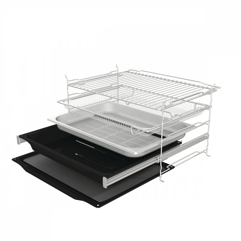 - AirFry+ - с использованием специального сетчатого противня. Режим идеально подходит для небольших кусков мяса, рыбы, овощей и замороженных продуктов, таких как картофель фри и куриные наггетсы.