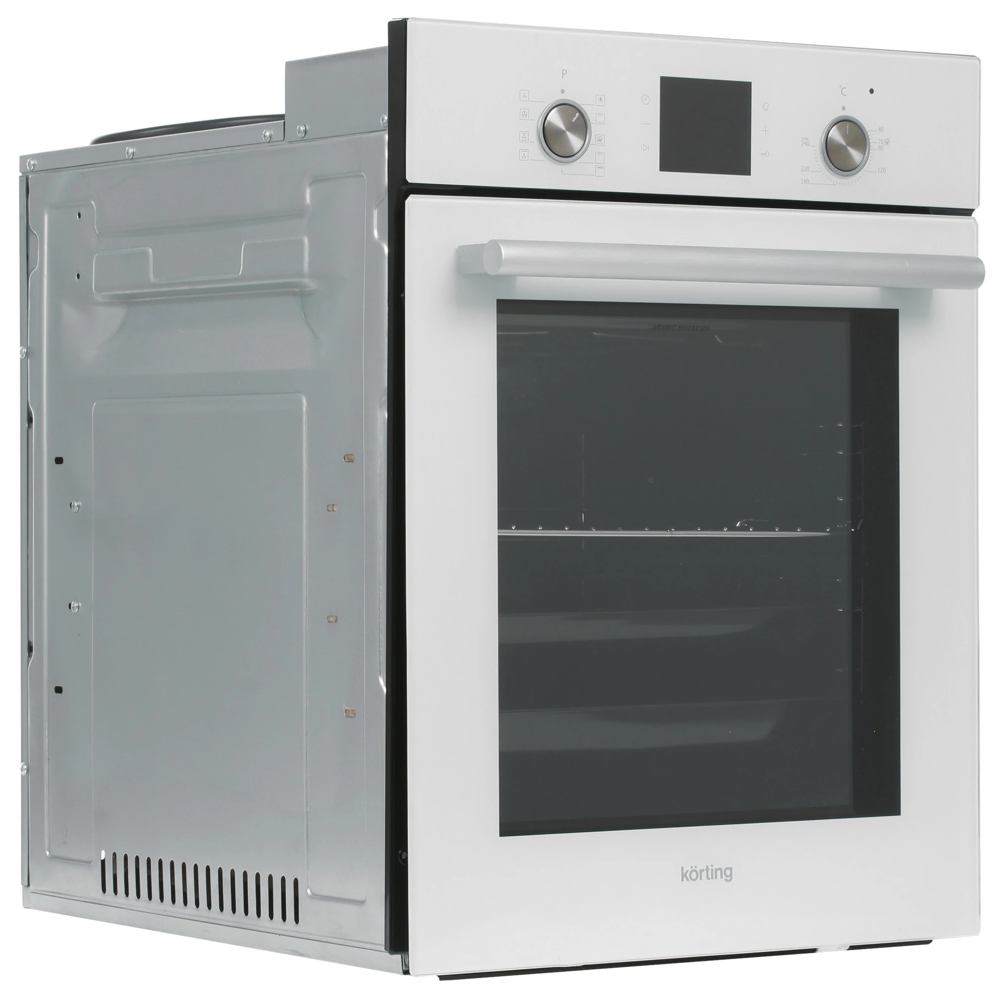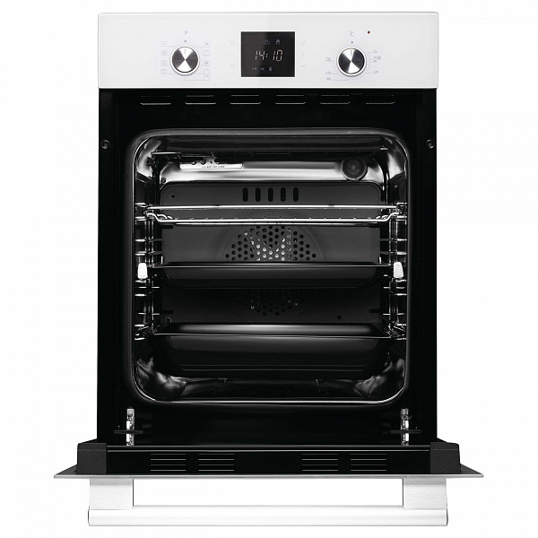 Электрический духовой шкаф Korting OKB 7951 CMW обладает мощностью 1900 Вт, что обеспечивает быстрый нагрев до 240 °С. В духовке есть гриль, позволяющий приготовить вкусные блюда из мяса. А наличие конвекции дает возможность каждому блюду правильно пропечься. Для определенного блюда можно выбрать один из девяти режимов приготовления. На дисплее отображаются данные о рабочем состоянии духового шкафа или текущее время. Таймер позволит задать нужное время и делать другие дела. А благодаря телескопическим направляющим противень или решетку очень удобно вынимать.
