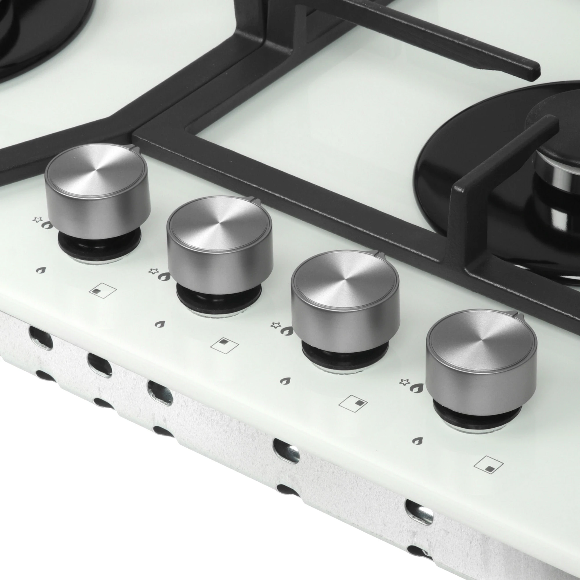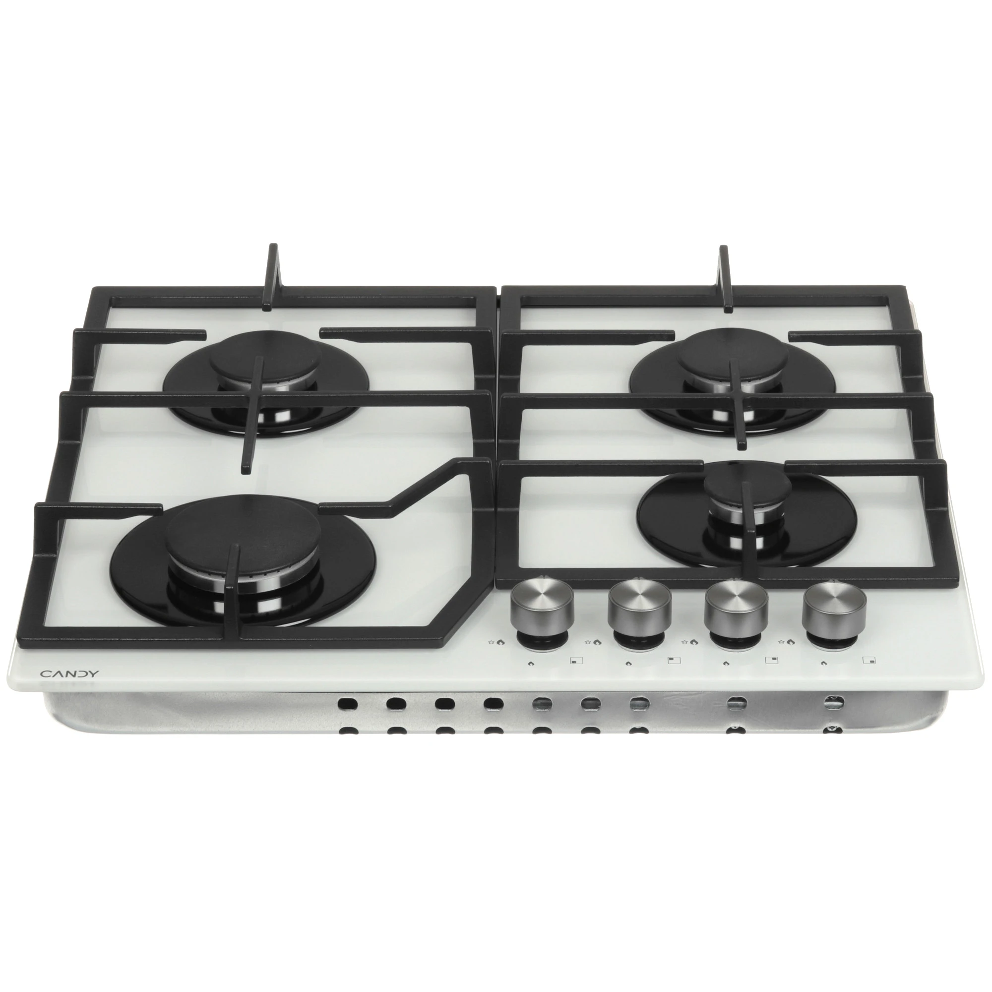 Газовая варочная поверхность Candy CHXG64CNW оснащена 4 конфорками, расположенными на прочной и легко очищаемой поверхности из закаленного стекла. Каждая конфорка оборудована чугунной решеткой. Для усиления мер безопасности предусмотрена система газового контроля, автоматически прекращающая подачу газа при случайном погашении пламени.