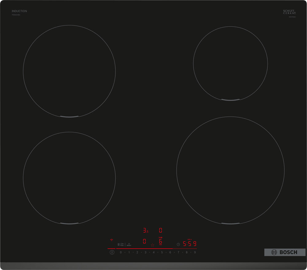 Индукционная варочная панель Bosch PIE631HB1E - современное решение для вашей кухни. Модель оснащена четырьмя конфорками, что позволяет одновременно готовить несколько блюд. Уникальная черная поверхность панели придает ей элегантный и стильный вид. Сенсорное управление и TFT-дисплей обеспечивают удобство и простоту использования. Функция распознавания посуды автоматически определяет размер и положение посуды на панели, что позволяет эффективно использовать энергию.