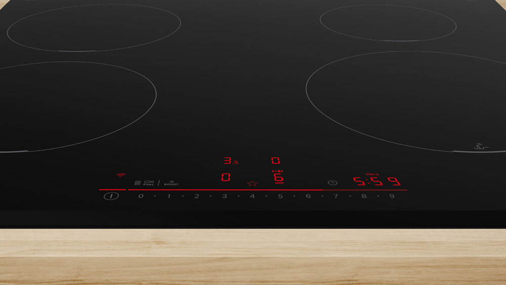 Варочная панель оснащена системой управления DirectSelect, которая обеспечивает быстрый и точный выбор требуемой степени мощности. Всего доступно 17 ступеней мощности, что позволяет точно настроить температуру приготовления. Функции PanBoost, ReStart и PowerBoost позволяют быстро нагревать посуду, продолжать приготовление после паузы и увеличивать мощность нагрева для более быстрого приготовления. Благодаря функции PowerManagement, панель оптимизирует потребление энергии, что позволяет экономить на электроэнергии.