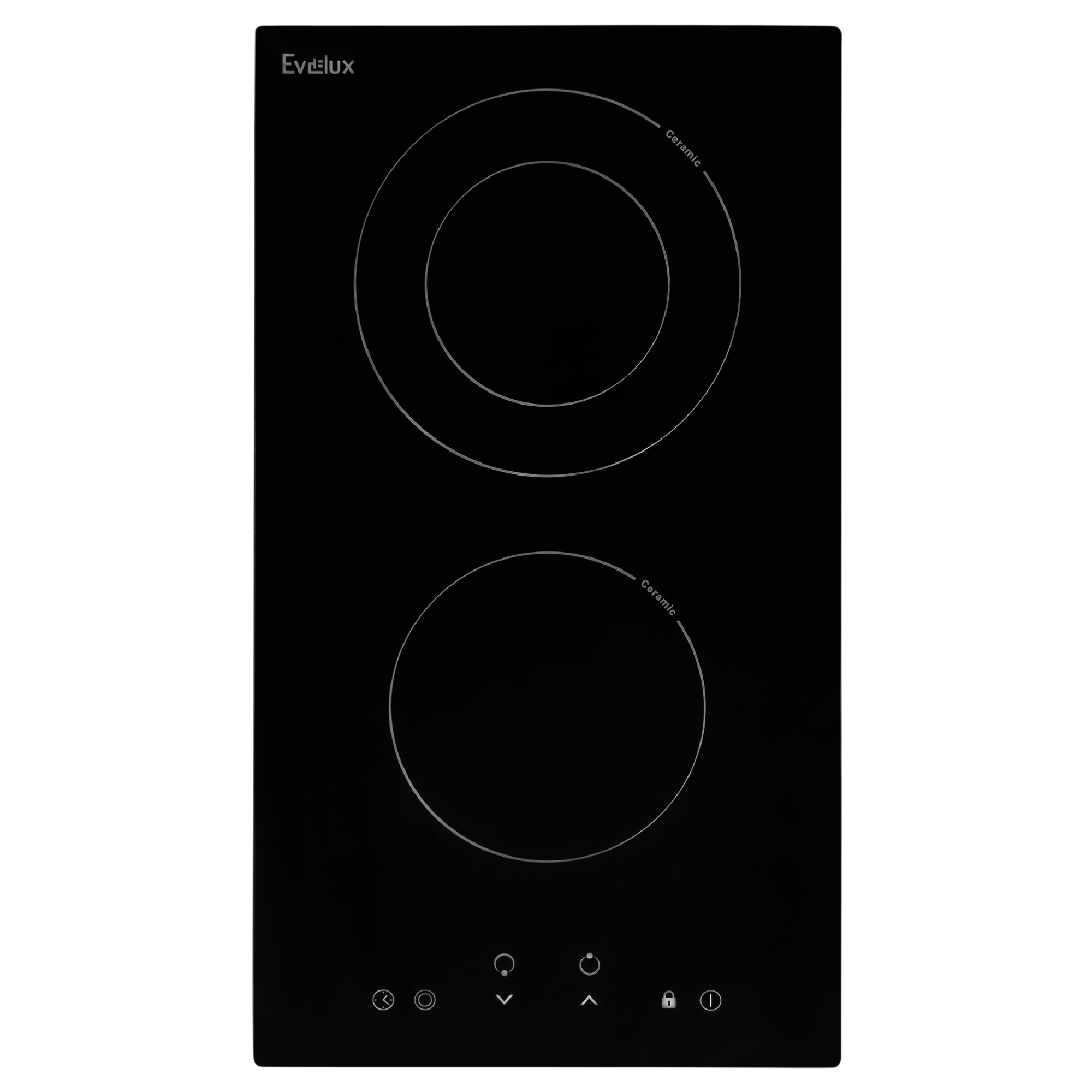 Встраиваемая электрическая плита Evelux HEV 321 B типа «Домино» выполнена из черной стеклокерамики. На рабочей поверхности — две конфорки типа Hi-Light. Ближняя диаметром 165 мм мощностью 1200 Вт, дальняя двойная максимальным диаметром 200 мм мощностью 1000/2000 Вт.