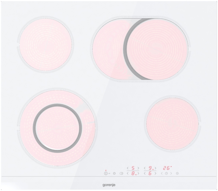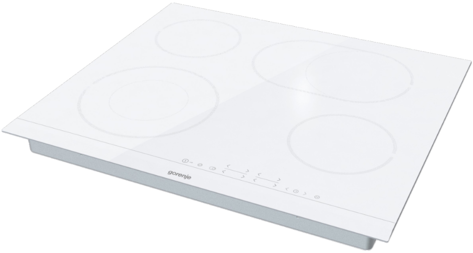 Независимая стеклокерамическая варочная панель Gorenje ECТ643WCSC — модель белого цвета со скошенным передним краем. Сенсорные переключатели позволяют настроить интенсивность приготовления, таймер и настроить специальные функции.