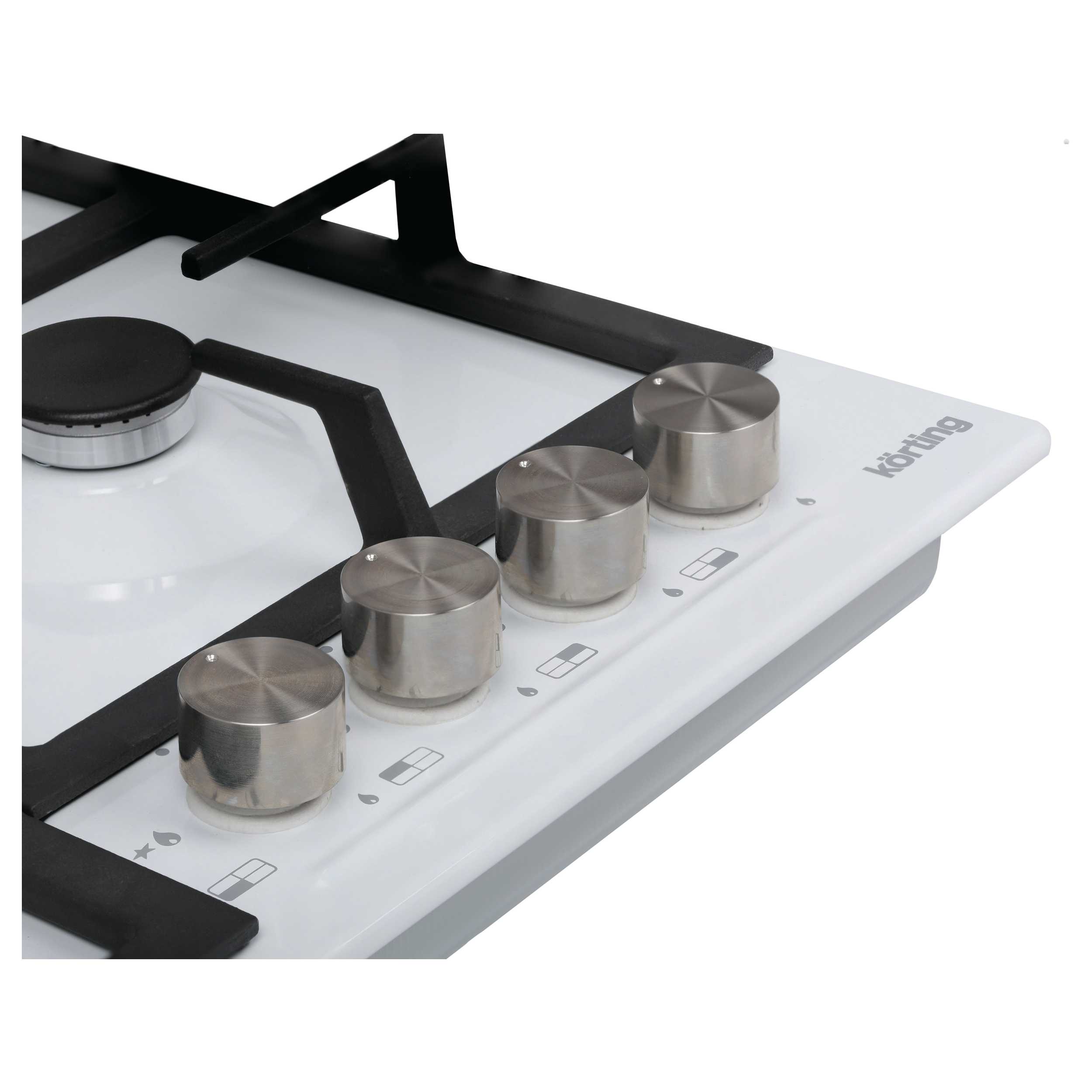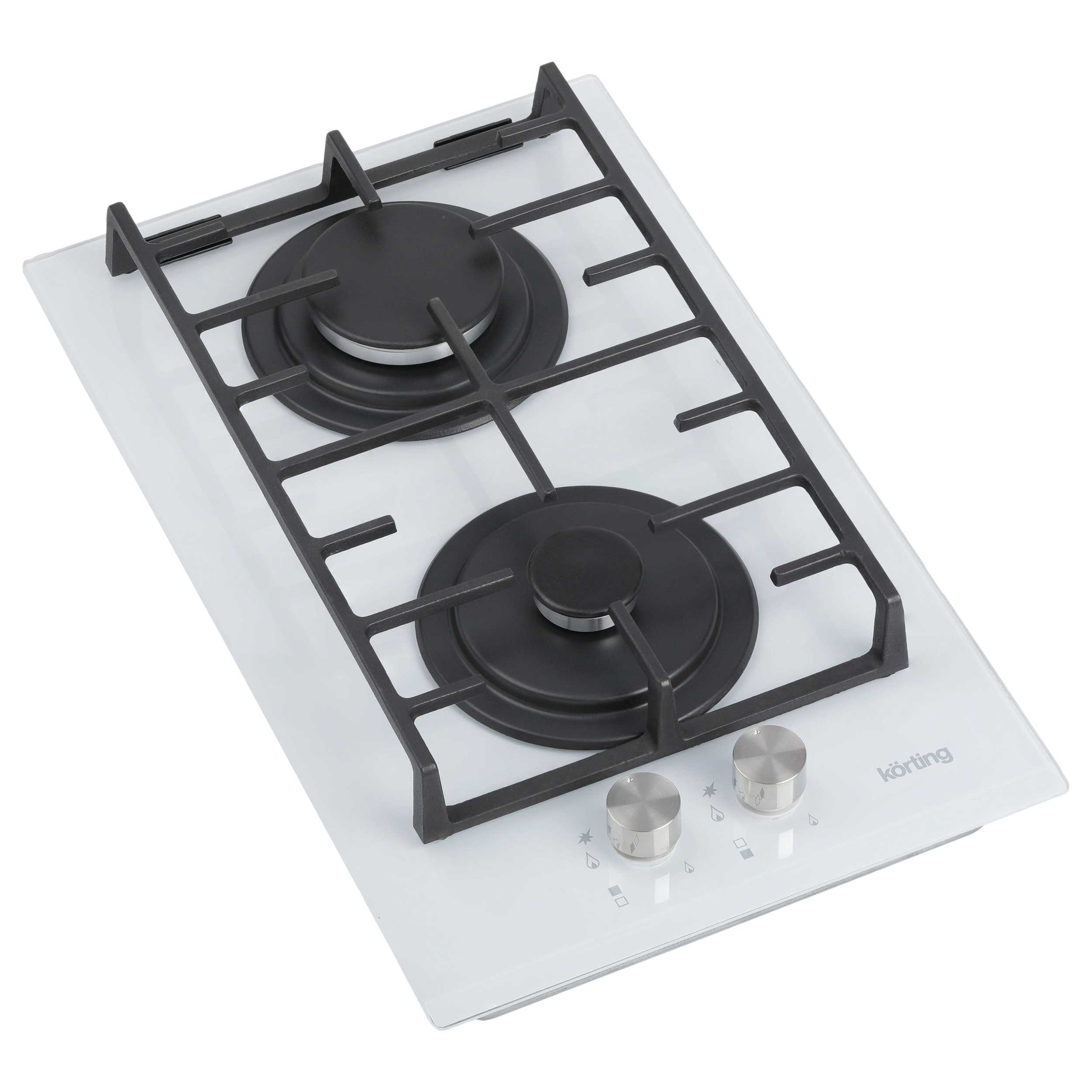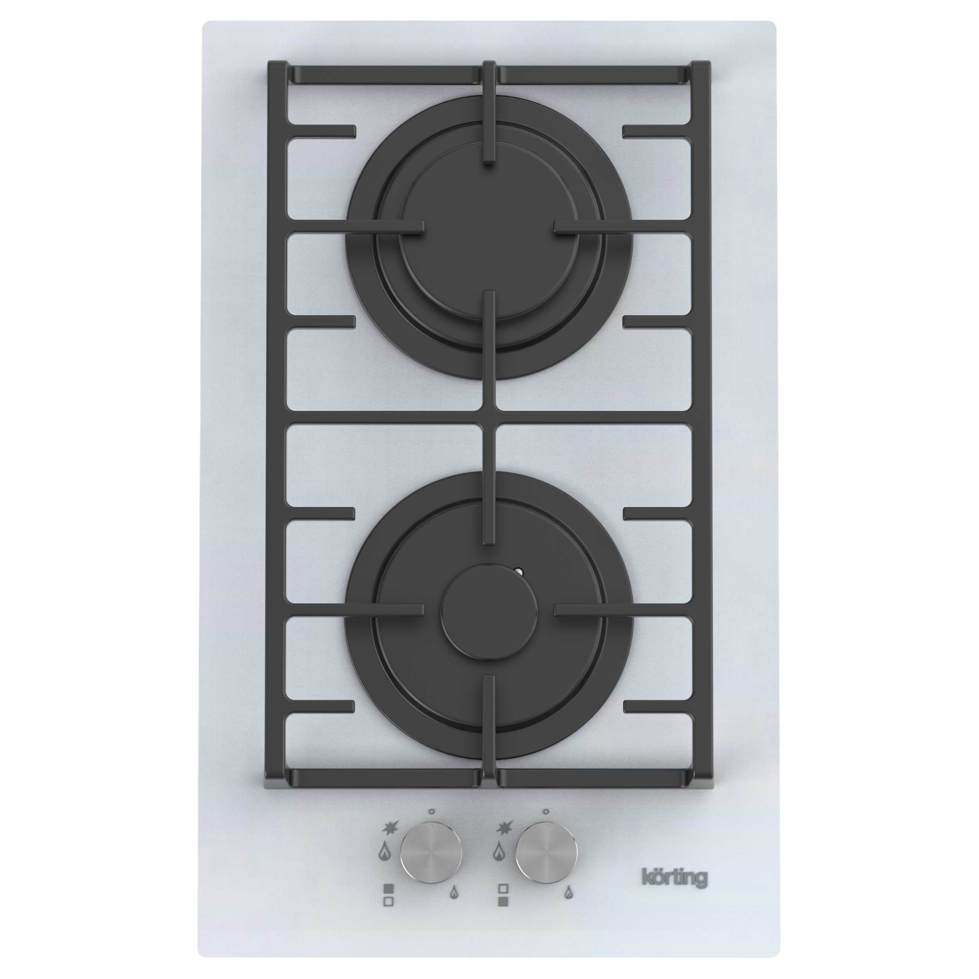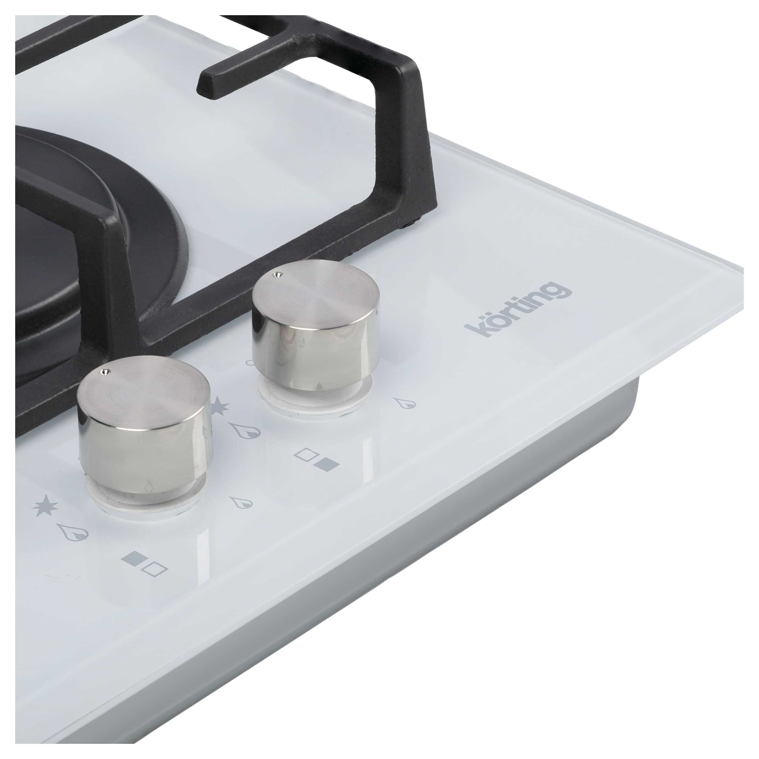 На панели Korting HGG 3825 CW перед конфорками расположены поворотные ручки, которые позволяют управлять мощностью пламени. В них встроен электроподжиг, поэтому для зажигания пламени не потребуется дополнительных средств, достаточно повернуть ручку. Безопасная эксплуатация прибора обеспечивается благодаря наличию газ-контроля. Эта функция позволяет отключать подачу газа, когда пламя горелки внезапно погасло при проливании жидкости.