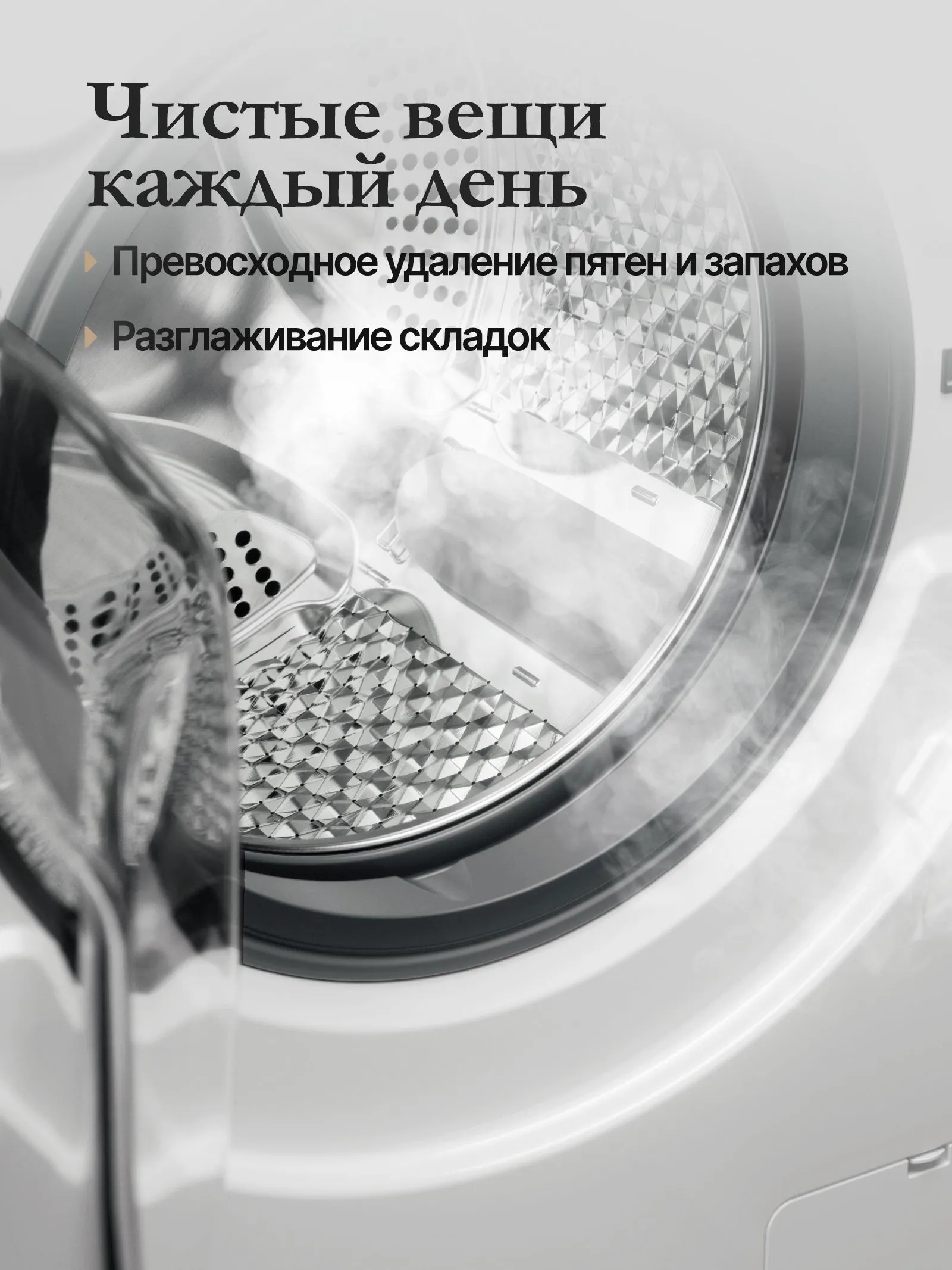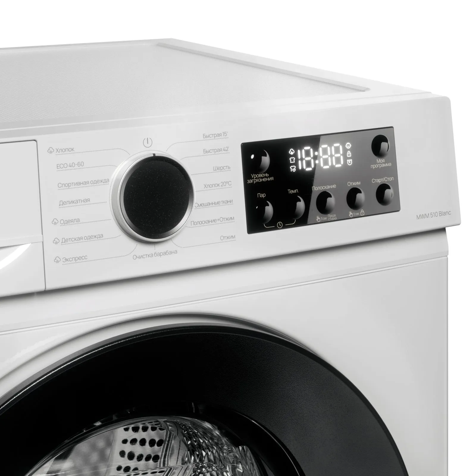Модель выполнена в белом цвете (Blanc) и оснащена барабаном из нержавеющей стали.