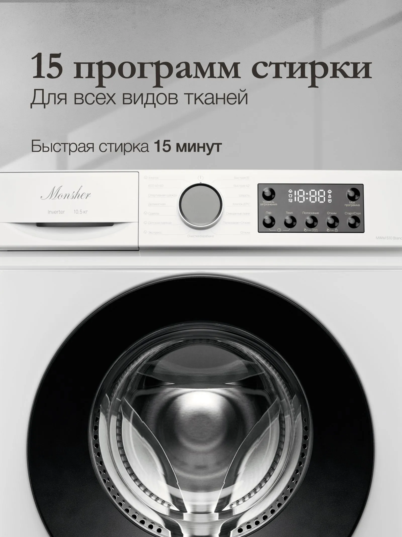 Программы (15 режимов): Включают хлопок, смешанные ткани, деликатную стирку, детские вещи, одеяла и быструю стирку 15 минут.