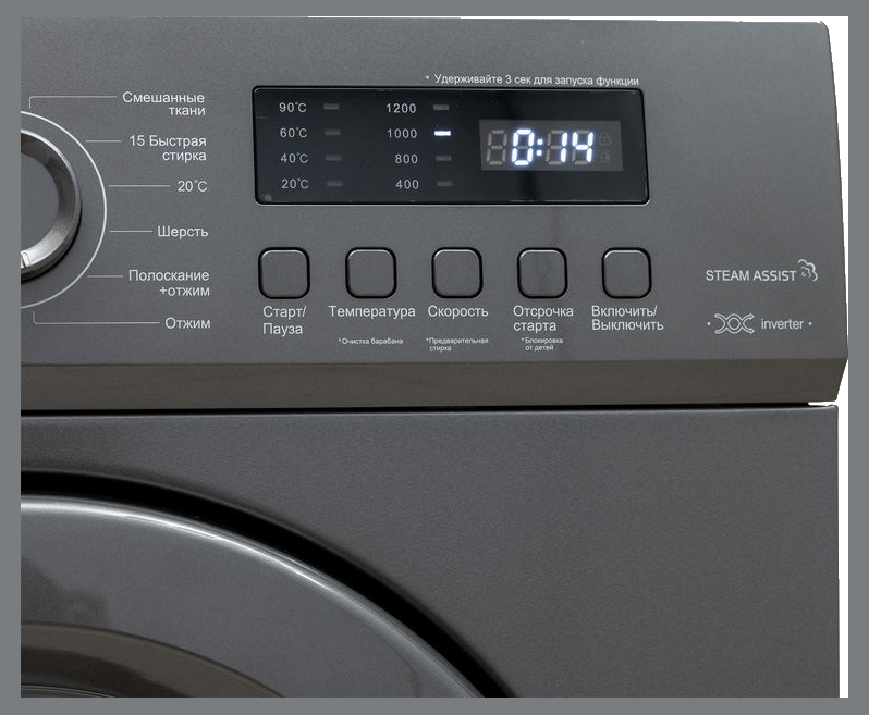 Среди функций, повышающих безопасность и комфорт пользования, отметим защиту от протечек, контроль дисбаланса барабана и специальный режим защиты от детей.