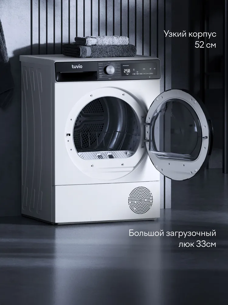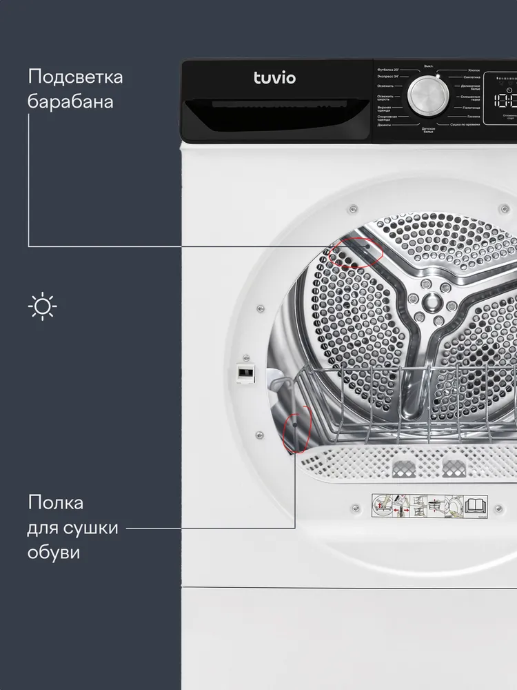 полный список режимов: Футболка 20', Экспресс 34', Освежить, Освежить шерсть, Смешанные ткани, Верхняя одежда, Спортивная одежда, Джинсы, Хлопок, Синтетика, Деликатные ткани, Полотенца, Гигиена, Сушка по времени, Детское белье; функции: двухстороннее вращение барабана, система обнаружения сбоев, блокировка от детей, индикатор цикла сушки, регулировка времени отложенного старта, регулировка уровня сушки, регулировка степени сушки, выбор скорости отжима (адаптация сушильной машины к отжиму стиральной машины), индикатор заполнения фильтра, индикатор заполнения резервуара для воды, индикатор очистки конденсатора, звуковой сигнал окончания цикла, функция отключения звука, автоматическая функция разглаживания складок