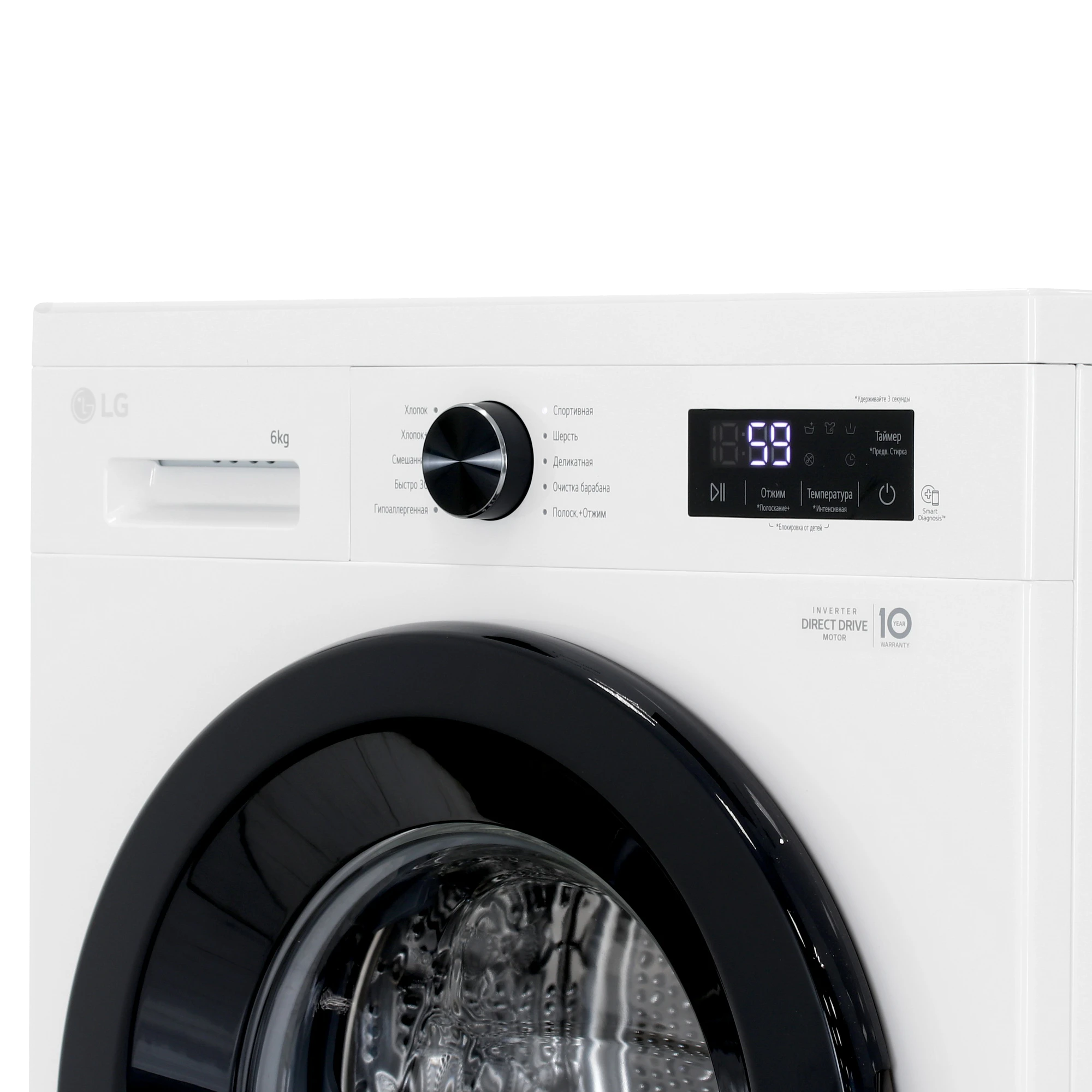 LG F2Y1NS6W - фронтальная стиральная машина с функцией пара Steam для удаления аллергенов, технологией 6 движений заботы для бережной стирки разных тканей и программой очистки барабана. Оснащена инверторным мотором с прямым приводом для тихой и эффективной работы, а система Smart Diagnosis позволяет быстро выявлять неисправности через смартфон.