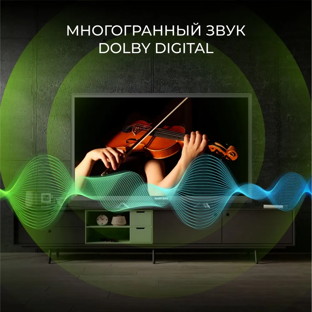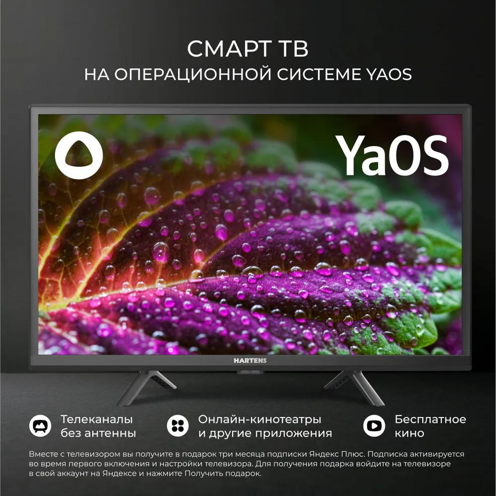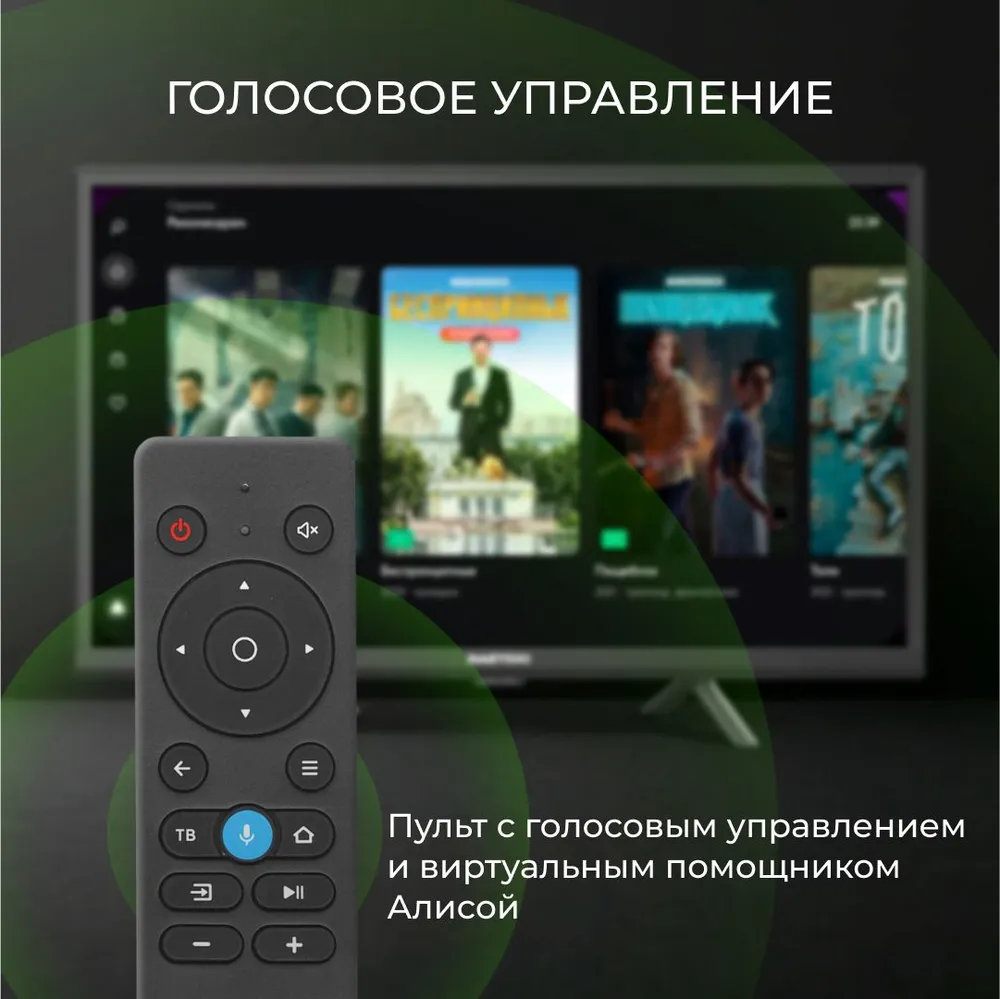 Оснащен операционной системой YaOS и встроенным Wi-Fi, предлагающий просмотр цифрового ТВ (DVB-T/T2/C/S/S2), медиаплеер, Bluetooth для подключения устройств и функции Smart TV для онлайн-контента, а также VESA крепление 100x100мм