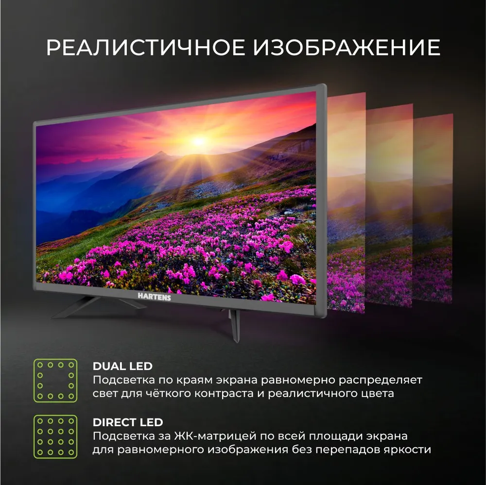 это 22-дюймовый LED телевизор с разрешением Full HD, белорусского бренда, предлагающий хорошее качество изображения и удобное управление, с поддержкой просмотра через USB и эфирных/кабельных каналов, идеален для небольших помещений.